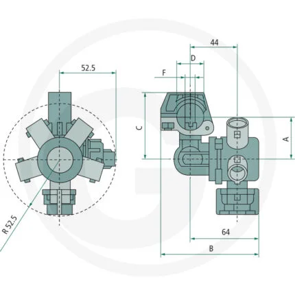 670402255 Suport duza simplu cu clema de montare pentru montarea conductelor, inclusiv a supapei de control cu membrană (EPDM) Trebuie comandat șurubul 2x 670400101
