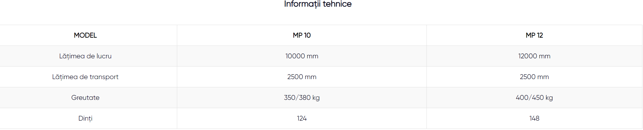 - Două rânduri de tăvalugi cu diametrul de 300 mm.