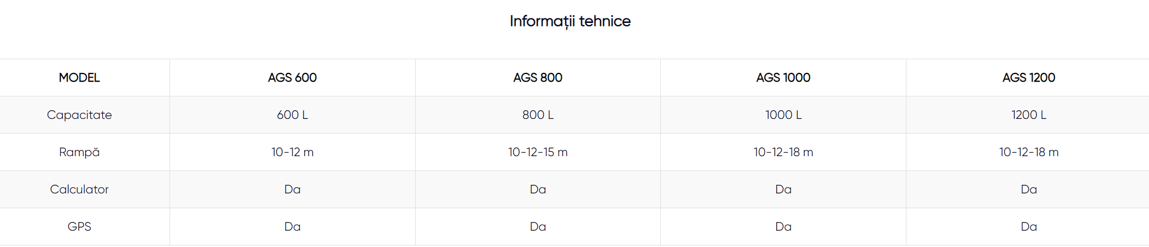 Sprayerul purtat AGS se remarcă prin designul său modern, garantând o funcționare fiabilă și o utilizare eficientă a pesticidelor și a energiei. Disponibile în variantele AGS 1000-1200, aceste mașini profesionale se evidențiază prin tehnologia de ultimă generație și construcția robustă. Aceste caracteristici permit utilizatorilor să efectueze tratamente la viteze mai mari și să opereze pe suprafețe extinse. Îndeplinind cu deplină responsabilitate standardele europene stricte privind mediu și pulverizare, AGS reprezintă alegerea optimă pentru o protecție eficientă a culturilor.